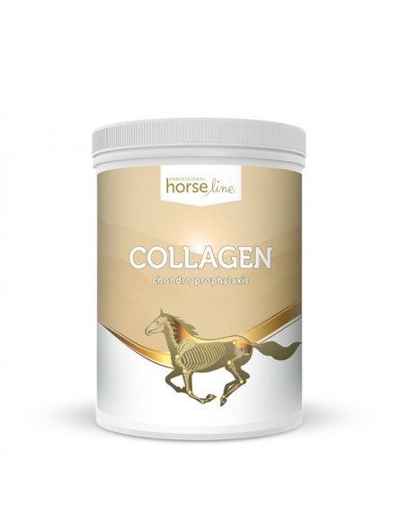 Kolagen typu II to hydrolizowane, łatwo przyswajalne białko budujące tkanki w całym organizmie – kości, stawy, chrząstkę stawową, tarcze międzykręgowe, więzadła, ścięgna, żyły, tętnice, skórę i kopyta. Wspomaga wytrzymałość i elastyczność tkanki łącznej. Szczególnie polecany w przypadku zapalenia, uszkodzenia, zerwania ścięgna lub mięśnia międzykostnego. Dodatkowo Collagen podawany w fazie wzrostu pomoże uniknąć ubytków w chrząstce stawowej, umożliwi lepsze przyswajanie substancji mineralnych oraz zwiększy gęstość tkanki kostnej.